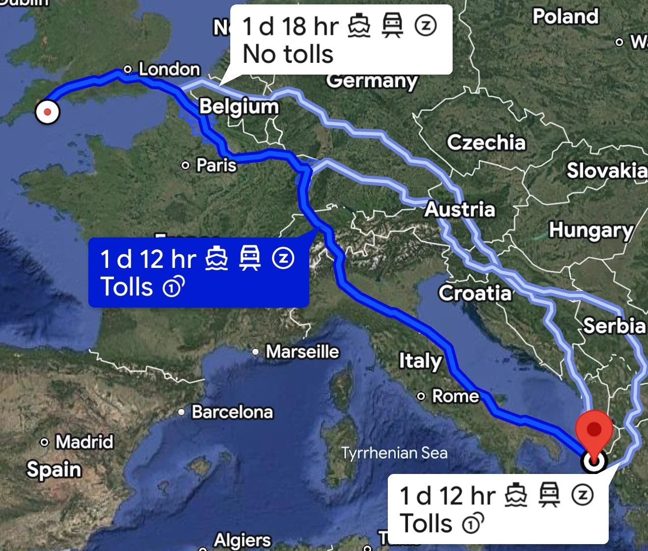 We planned the route carefully, taking into account the size of the boat. There were 3 ferry crossings involved (Dover - Calais, Ancona - Igoumenitsa and Igoumenitsa - Corfu), which all had to be carefully coordinated to ensure the trip went smoothly with minimal waiting time.